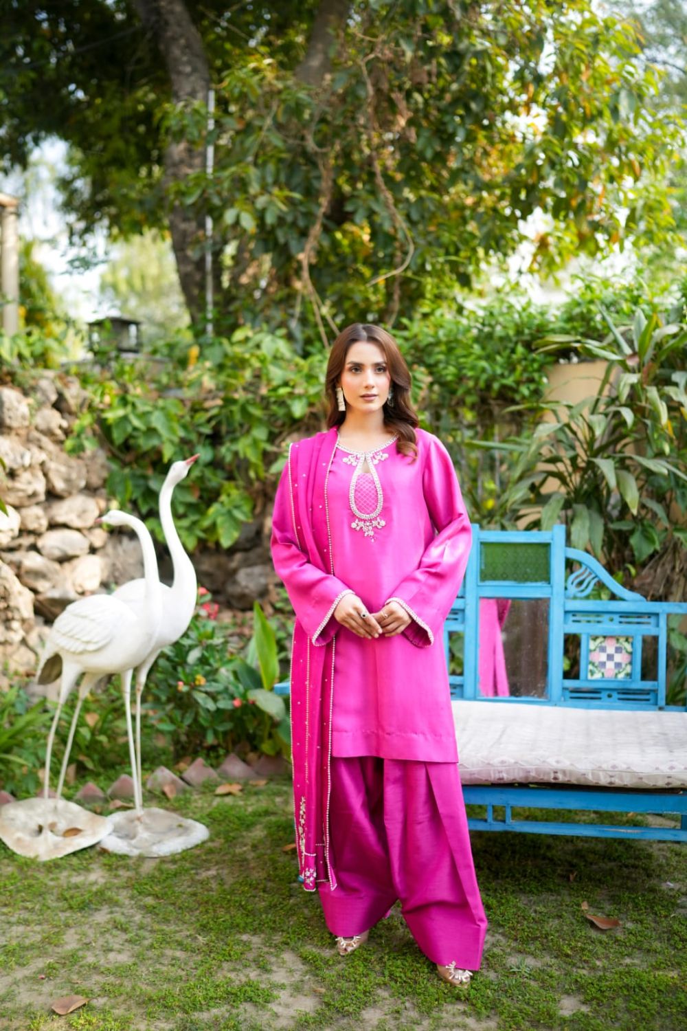 Fabric: Pure Organza Dupatta, Korean Raw Silk Shirt & Pants